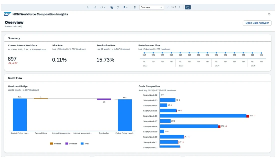 W środowiskach takich jak SAP dane z różnych obszarów HR można łączyć w sposób, który ułatwia zauważenie zależności, powtarzających się sygnałów i obszarów wymagających uwagi. Praca na bieżących danych HR pozwala analizować sytuację szerzej niż tylko z perspektywy pojedynczego raportu. To właśnie takie spojrzenie nadaje analityce realną wartość biznesową.