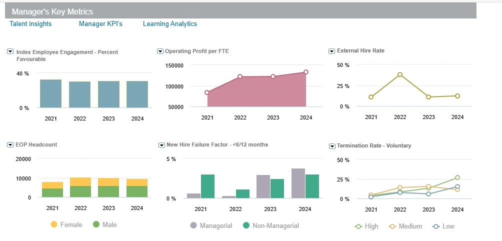 Dlatego tak ważne staje się łączenie danych z różnych obszarów HR: zatrudnienia, absencji, ocen, zmian organizacyjnych czy zaangażowania. Bez jednego, wspólnego obrazu nawet bardzo poprawny raport potrafi tylko dobrze opisać chaos.