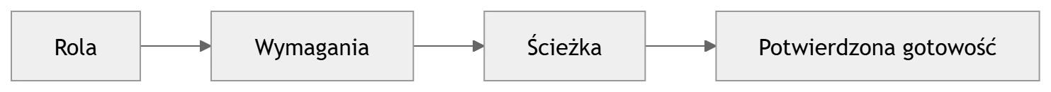 Wtedy masz prostą, zrozumiałą logikę - most kompetencji w praktyce: rola, wymagania i ścieżka prowadzą do jednego wyniku - potwierdzonej gotowości, którą da się monitorować.